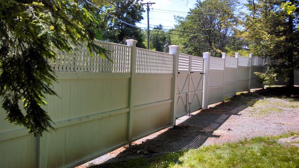 This custom fence project consists of: 5′ Berkshire and 2′ Lattice Custom Wood Fence in Warwick NY