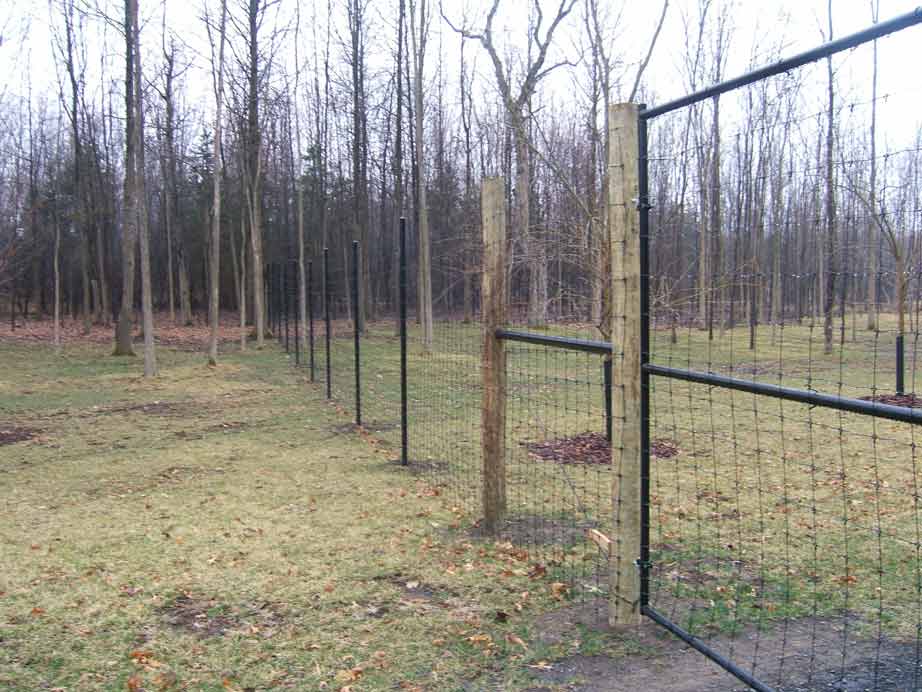 This custom fence project consists of: Deer Fence with Woven Wire and Steel Posts
