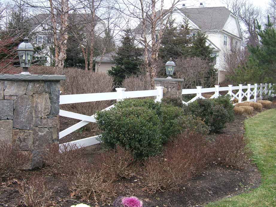 This custom fence project consists of: Country Estate Vinyl Cross Buck Fence Warwick NY