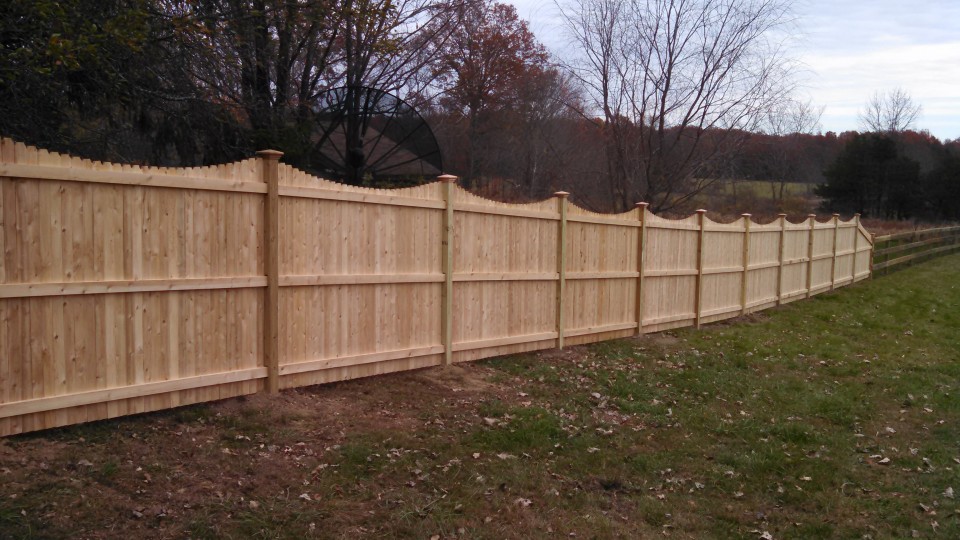 This custom fence project consists of: Dog Ear Solid With Scallop and Caps Wood Fence Unionville NY
