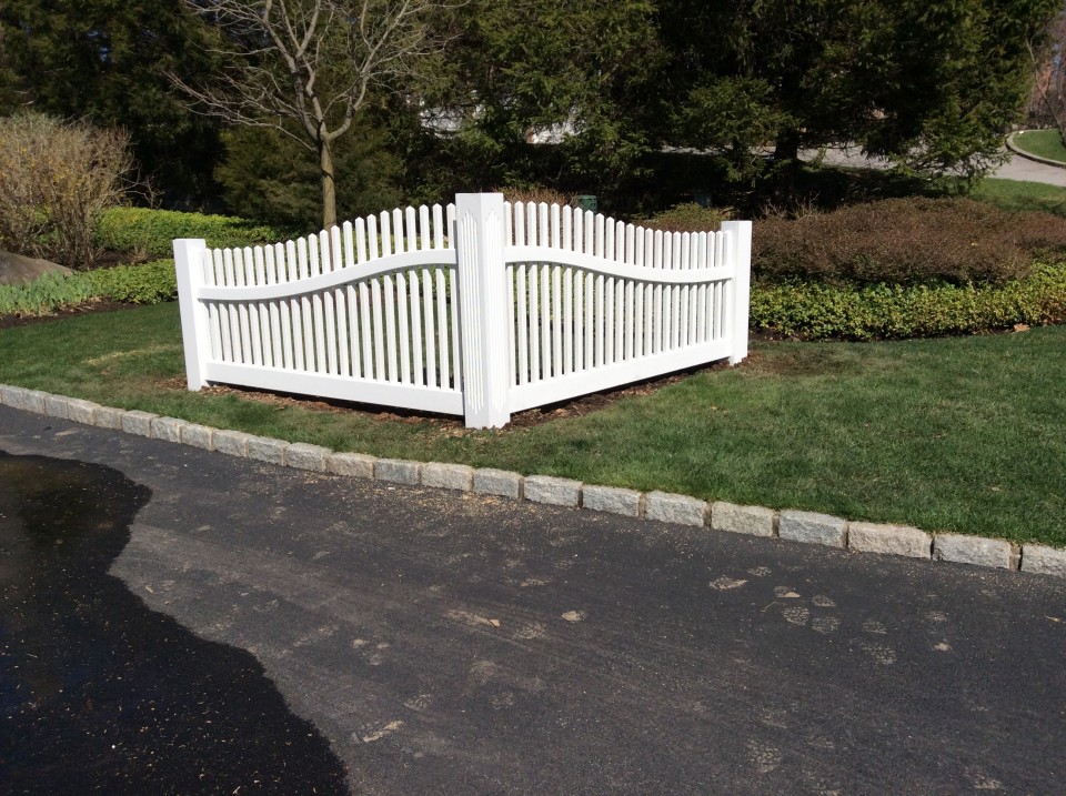 This custom fence project consists of: Custom Picket Sweep Section With Fluted Post Custom Wood Picket Fence in Warwick NY